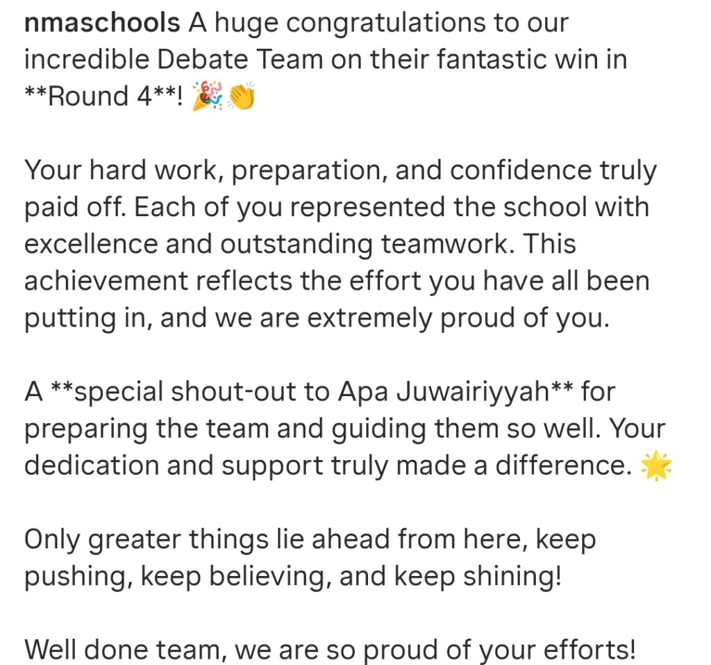 Education NMA School – Debate Team Association of Muslim Schools1st April 20261st April 2026 29Views Share Facebook Twitter Pinterest Read Time:0 Second About Post Author Association of Muslim Schools abdulgafoor.mohamed@ris.org.za Happy 0 0 % Sad 0 0 % Excited 0 0 % Sleepy 0 0 % Angry 0 0 % Surprise 0 0 %